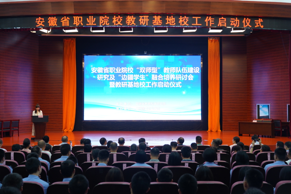 6月26日,由安徽省教育科学研究院主办、学院承办的“双师型”教师队伍建设和边疆学生融合培养教研基地校工作启动仪式在学院隆重举行。学院党委副书记、院长操申斌,安徽省教育厅职业与成人教育处副处长徐海洋,安徽省教育科学研究院职业教育研究所副主任段红出席启动仪式。来自全省21家中高职院校的领导、基地校项目负责人和学院学生代表约120余人参加活动。