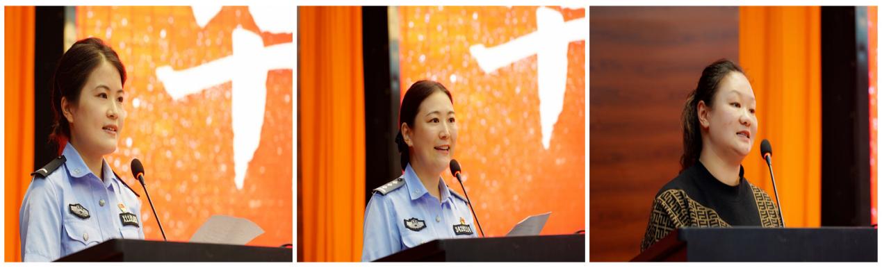 法律一系法律事务4班的席雨轩代表全体毕业学员发言,她用“梅花香自苦寒来”深情表达了对警院和师长的感恩之情。辅导员代表韩伟衷心祝贺学生顺利完成学业,真诚祝福他们开启人生新的征程,深情寄语毕业生要用实际行动诠释警院学子的责任与担当,描绘属于自己的精彩画卷。法律二系法律文秘3班孙智慧同学的母亲王亚梅作为家长代表发言,她回忆了孙智慧同学大学的成长,对学院的培养表示感谢。