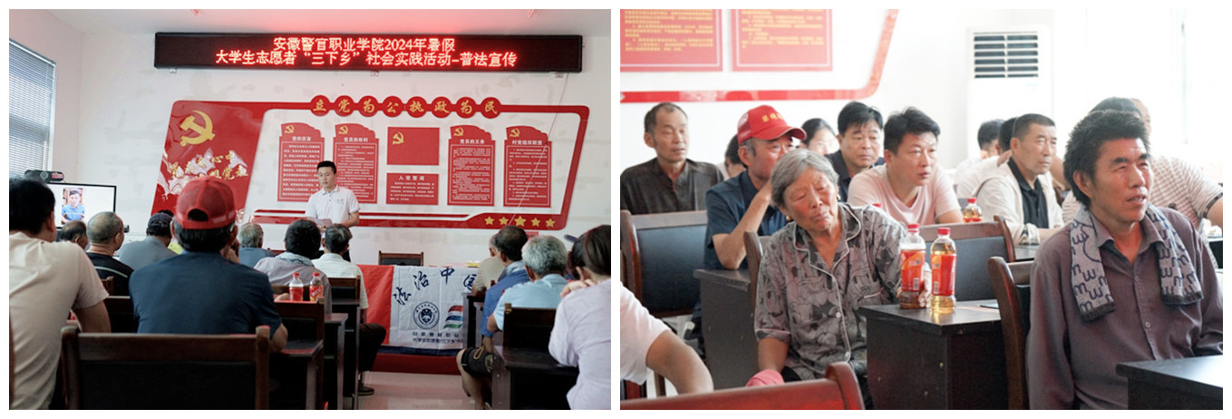 7月30日,正逢临泉县老集镇的赶集日,普法宣传团的队员们在集市上搭建普法宣传展台,以专业知识为基础,向广大村民派发普法宣传册,围绕与村民利益密切相关的领域开展法治宣传,增强村民办事依法、遇事找法、解决问题用法、化解矛盾靠法的思想自觉和行动自觉。接下来2天里,普法宣传团的队员们还深入前于庄村、南牛村、李湖村等地开展3场普法讲座,通过案例分析、图片演示、视频播放等多种方式,用通俗易懂的语言向当地的老人、小孩讲解法律相关知识及咨询途径,切实提高村民法律意识。