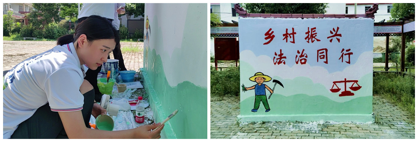为丰富农村文化生活,推动乡村美化与文化建设,“夏日绘梦行”墙面彩绘团队携带专业绘画工具,到前于庄村实地考察开展墙绘创作。在活动开始前,队员们与当地政府部门多次协商交流,确定了墙绘位置和方案。他们分工明确、配合默契,顶着烈日从设计到勾形、描线、调色、填色,有条不紊。他们用辛勤的付出为前于庄村添了一道靓丽的风景,也在这个过程中成长,留下了属于自己的足迹。