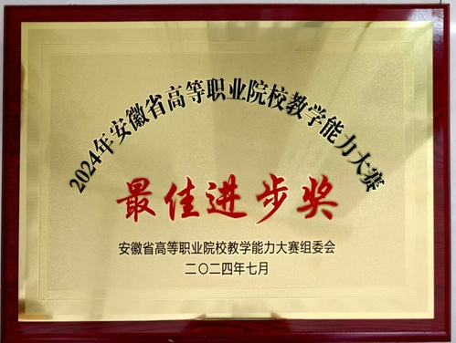 近日,安徽省教育厅发布《关于公布安徽省高等职业院校教学能力大赛获奖名单的通知》(皖教秘高〔2024〕100号),学院斩获一等奖1项、二等奖2项、三等奖2项,并获安徽省高等院校教学能力大赛“最佳进步奖”。优秀的成绩既体现了学院教师专业教学水平,又反映了学院高质量发展成果。