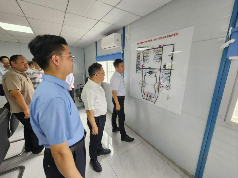 操申斌一行听取现场施工进展情况汇报
