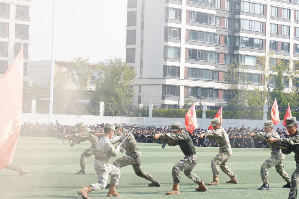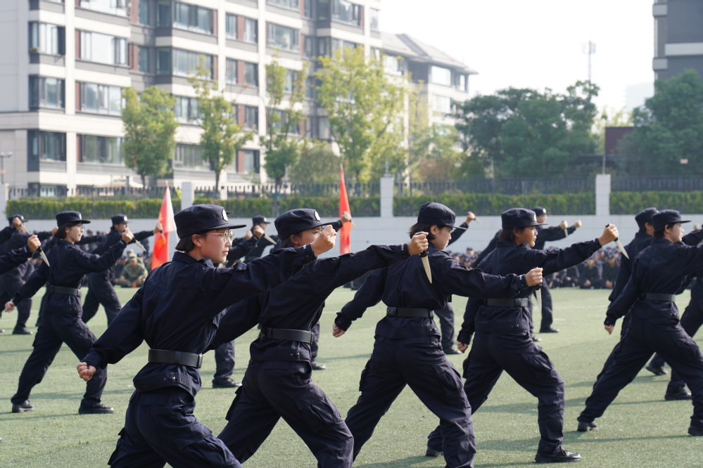 大会在庄严的国歌声中拉开帷幕。升国旗仪式后,军训课目训练成果展示正式开始。2024级参训同学组成30个特色方阵,意气风发、斗志昂扬,踏着整齐的步伐、喊着嘹亮的口号经过主席台。韵律操拉开序幕,轻盈舞动,焕发青春无限活力;匕首操紧随其后,锋利出鞘,映射出冷静果敢之气;警棍术接踵而至,精准操控,尽显专业卓越风采;擒敌拳凌厉登场,拳拳到位,彰显勇士无畏之心;最终,旗语华丽压轴,智勇交织,于全场闪耀夺目光芒。