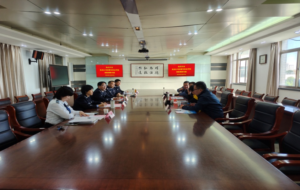 随后,相关部门负责人就高水平专业群建设、师资队伍建设、教学科研工作、人才培养模式、便捷入警机制和警衔培训等方面展开了深入研讨交流。