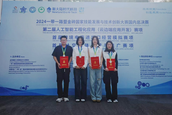 11月10日,由公共管理系国际经济与贸易专业22级、23级学生张瑶、陈丽群、张瑞雪、宛毅组成的学院代表队,在2024“一带一路”暨金砖国家技能发展与技术创新大赛之首届跨境电商进出口经营模拟赛项国内总决赛中,荣获国赛二等奖。