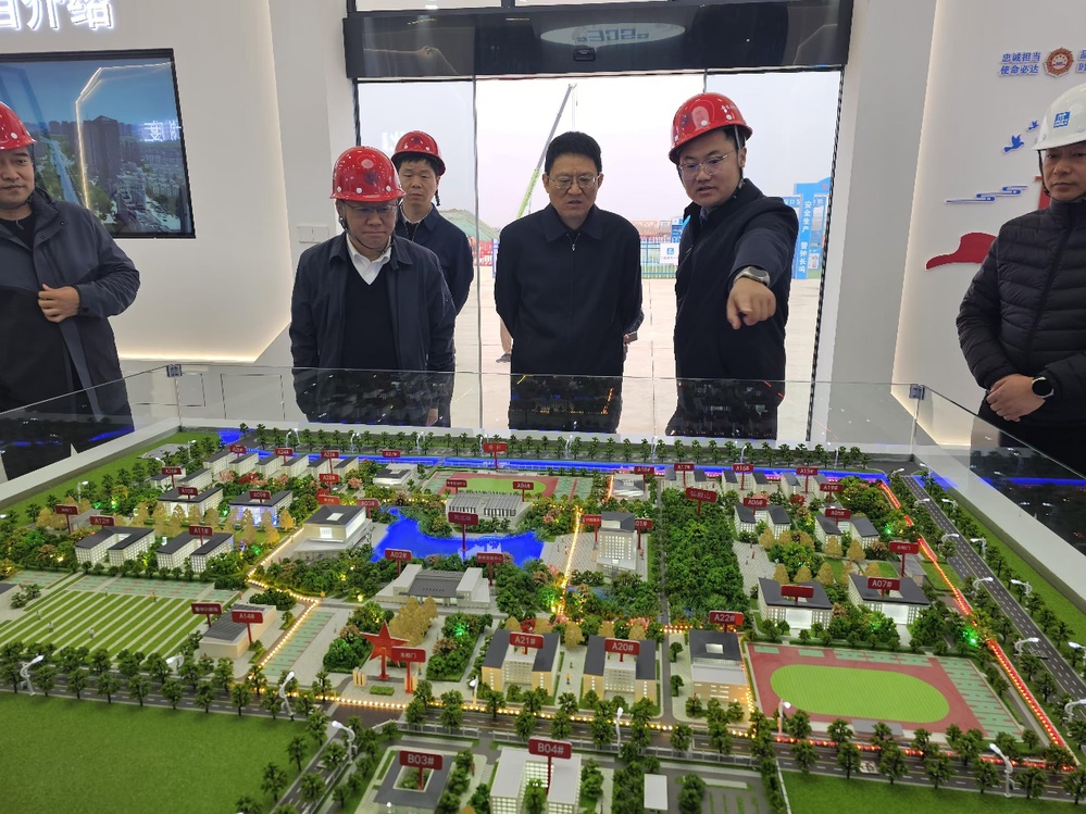 胡孔胜一行察看了项目建设智慧展厅、施工质量样板展示和安全教育培训体验馆,详细了解项目建设整体情况、施工质量标准和安全施工规范等内容;实地查看了新校区行政服务中心单体施工现场,详细询问了工程进度及资金使用情况,强调要确保新校区工程建设进度和质量,不断强化项目安全管理。