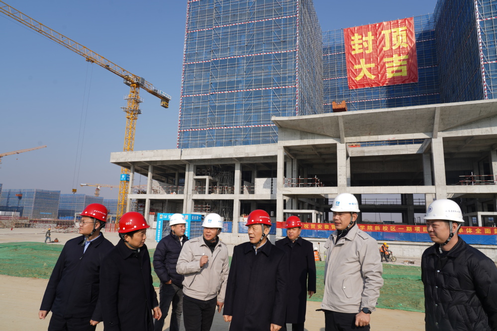 宋书岭一行实地察看了施工质量展示板、消防安全培训馆等,详细了解了项目进展情况,走进已封顶的新校区实验实训楼内,了解主体建筑工程进度、施工质量和选材用材等情况。