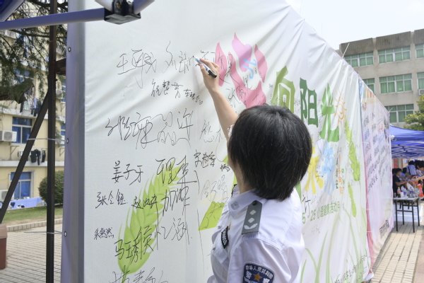 活动注重价值观引领与社会责任感培育。“蓝信封大使招募站”吸引众多学生驻足,通过书信结对帮扶乡村儿童心理成长,在助人过程中实现自我成长。心理健康宣誓签名墙前,学生握拳宣誓,郑重签下“我爱我”承诺,让学生感受到守护心理健康是终身必修课。最具温情的“千绪换玫瑰”和“小狗集市”活动中,学生用匿名写下的烦恼、困惑换取象征希望的玫瑰花和可爱小狗立牌,“你人也太好了吧展”区展出了学生投稿作品,帮助大家发现身边温暖人心的好同学好朋友,体验情绪正向流转的温暖。