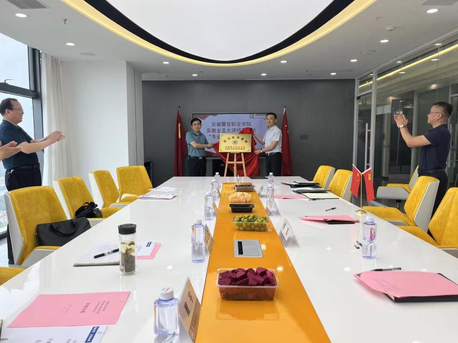 在安徽金亚太律师事务所,安徽金亚太律师事务所刑事业务中心副主任蔡鹏对律所的发展情况进行了介绍,桂勇介绍了学院的建设现状。双方就实习实训、兼职教师选聘、专业共建等方面达成共识。