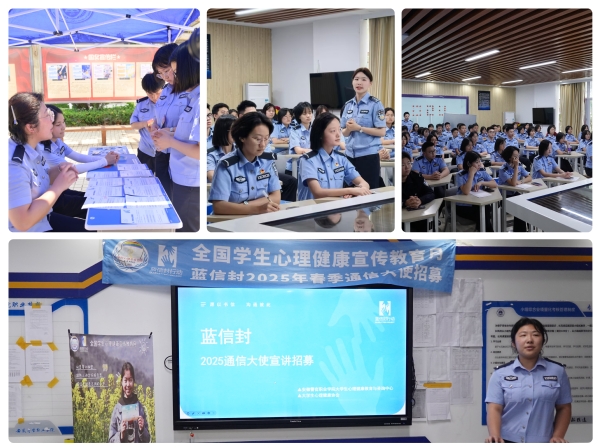 活动月中,学院依托521心理健康游园会活动,搭建“蓝信封”宣传招募展台,院团委公众号发送相关微信宣传推文,大学生心理健康协会社团组织开展“蓝信封”专题招募宣讲会,鼓励警院学子与乡村儿童开展一对一的长期书信陪伴服务,为孩子树立求学榜样,共同收获真挚的友谊和成长。截止到目前,全院累计招募公益服务通信大使八十余人。同时,心理健康教育与咨询中心在学术报告厅组织“心影相随”心理观影活动,观看央视纪录片《我们如何对抗抑郁》,引导学生正确应对情绪压力与挫折,促进心理健康知识的普及与传播。