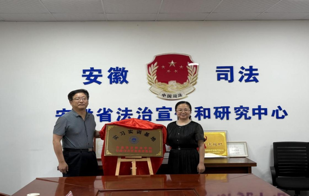 7月2日下午,学院党委委员、副院长欧元军带领实验实训中心、法律二系有关负责同志,前往安徽省法治宣传和研究中心进行访企拓岗暨实习实训基地授牌。