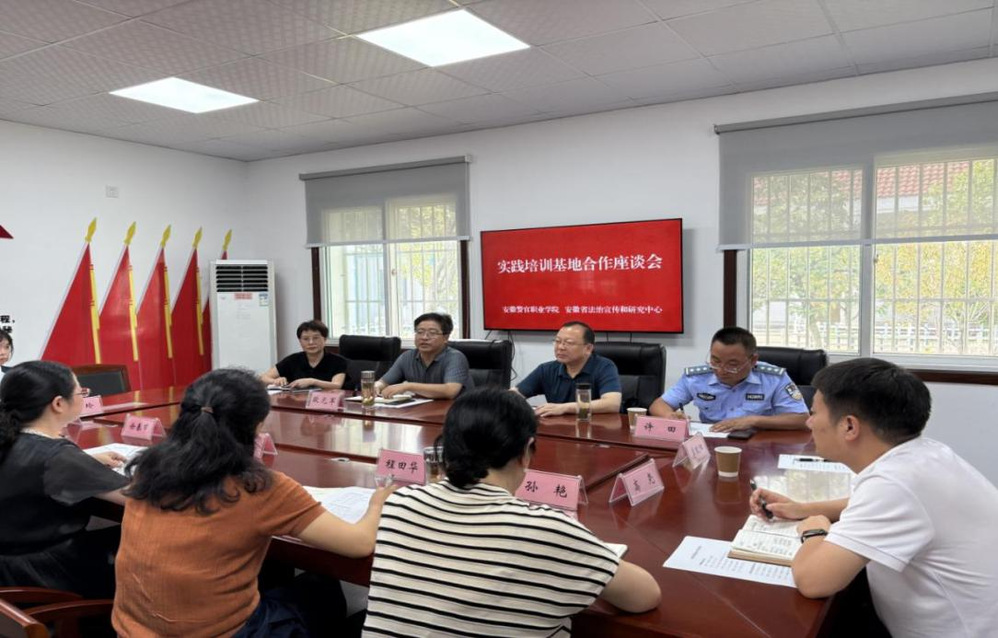 座谈会由安徽省法治宣传和研究中心党支部书记、主任徐锐主持。会上,欧元军介绍了学院发展现状及新校区建设情况。他指出,学院坚持“做强做优警法类专业,发展与新兴产业和领域相关专业,不断提升服务司法行业和地方经济发展的能力”的办学路径,此次与省法治宣传和研究中心合作,是学院深化校研合作、拓展实践教学平台的重要成果。欧元军表示,希望通过共建实践培训基地,实现资源共享、优势互补,共同培养高素质法治人才。中心负责同志对学院一行表示热烈欢迎,回顾了双方长期以来的密切合作,特别提到近年来在人才交流方面取得的丰硕成果。