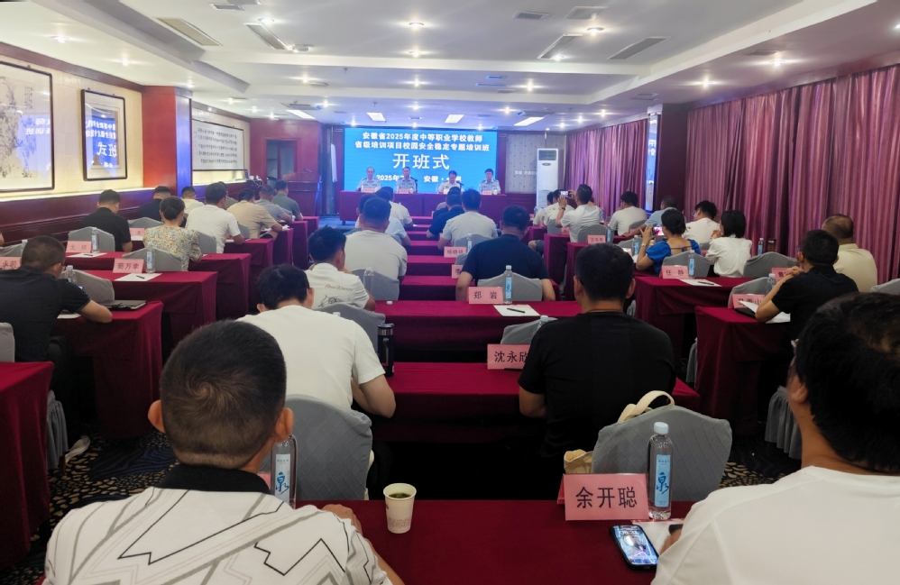 刘绍云勉励全体学员提高政治站位,深刻认识校园安全工作的重要性、复杂性,珍惜学习机会,提升专业素养和应急处置能力,坚持学以致用,将培训成果切实运用到学校安全管理的实际工作中,为打造平安、和谐、稳定的校园环境,推动安徽省职业教育事业健康发展作出积极贡献。