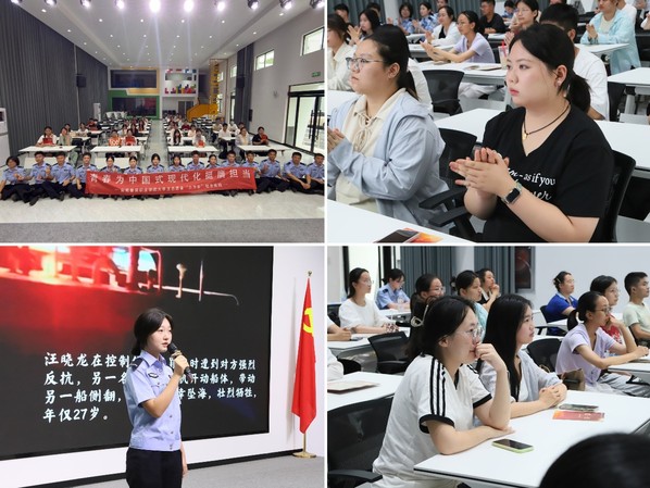 7日下午,实践团队首先来到龙眠街道东关社区党群服务中心。在社区新时代文明实践站内,开启了一场“追光”青春思政课展演。当讲述到海疆卫士汪晓龙烈士的事迹时,大屏幕浮现出他生前执行任务时的英姿,宣讲员哽咽着还原他写下的“愿以吾身护山河”的铮铮誓言。现场观众凝神静听,当听到烈士在生命最后一刻仍紧握钢枪护卫领海时,不少人红了眼眶,悄悄抹去眼角的泪光。“这场宣讲让我看见了青春最炽热的模样!” 看到“桐城市共青团”刊发的宣讲预告后,专程前来的学院2022级毕业生江薇激动地表示:“学弟学妹们用专业与热忱诠释了警院人的精神传承。这场活动让我真切触摸到了母校蓬勃的生命力,也让我为成为一名警院学子而自豪!”