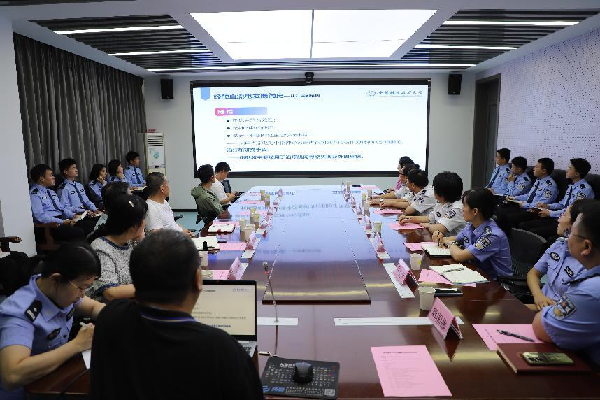 张效初教授做了一场代表神经调控领域前沿的“经颅电刺激技术基础与进展”的学术讲座,系统介绍了其团队研发的TI-tACS非侵入性深部脑刺激技术,该技术通过精准靶向调控神经回路,为特殊人群心理干预提供了创新方案。我院警察系研究团队汇报了结合TI-tACS技术未来在司法领域应用的研究框架。来自巢湖监狱、女子监狱、未成年犯管教所、戒毒康复中心等单位的与会专家就技术安全性评估、跨学科协作机制等议题开展讨论,并结合一线需求,提出了研究方向和路径建议。