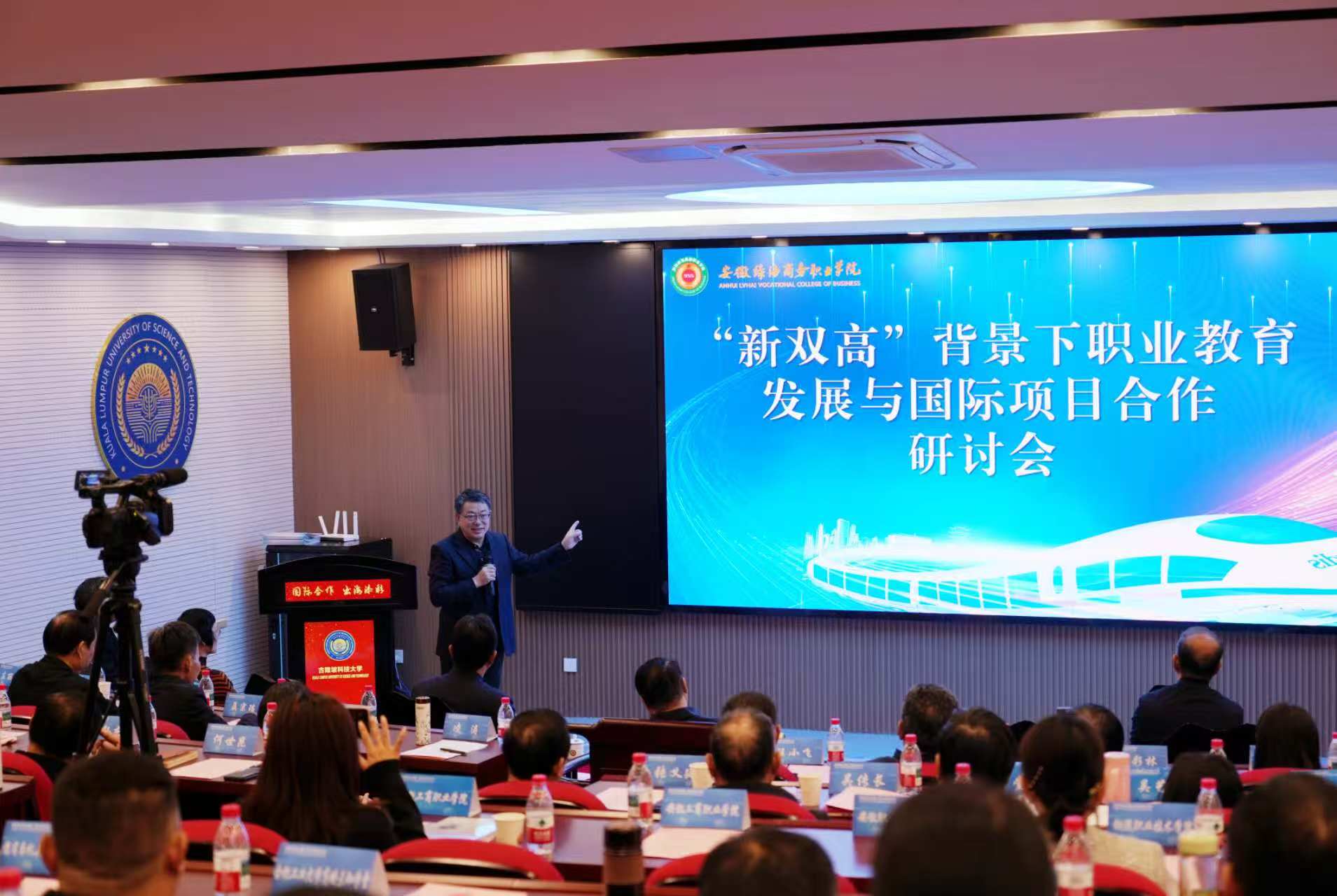 10月25日,“新双高” 背景下职业教育发展与国际项目合作研讨会在安徽绿海商务职业学院如期举办,该研讨会由安徽数字创意职业教育集团主办、安徽绿海商务职业学院承办,旨在积极响应教育部关于推动职业教育国际化的部署要求,促进中国职业教育向数字化、国际化、绿色化转型发展。学院党委副书记刘绍云、法律一系主任受邀参会,与省内外教育主管部门领导、行业协会相关负责人、职教集团及共同体主要会员单位代表、其他职业院校代表等齐聚一堂,共同为职业教育国际化高质量发展建言献策。