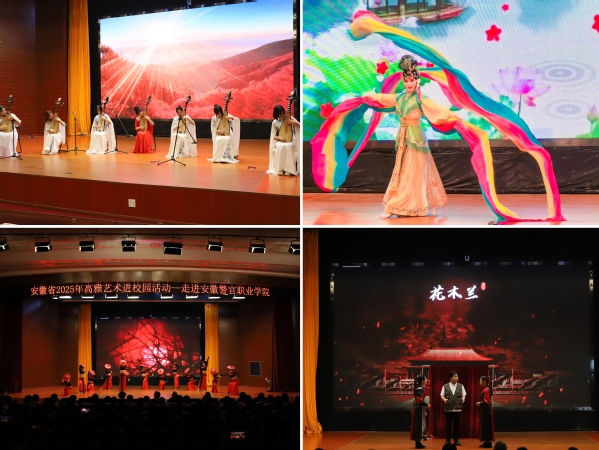 11月26日,安徽省2025年高雅艺术进校园活动在学院精彩上演。本次专场演出由安徽黄梅戏艺术职业学院师生倾情献艺,为学院300余名师生带来了一场集传统戏曲、民族舞蹈与时代元素于一体的艺术盛宴。活动得到两校领导高度重视,学院党委书记桂勇、安徽黄梅戏艺术职业学院院长陈二祥出席活动,与师生们共同观看了演出。