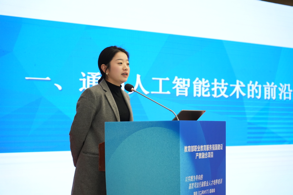 科大讯飞股份有限公司高教研究院副院长、高教高级方案架构师徐雪,作了题为《人工智能赋能司法职业教育数字化转型与高质量发展》的报告,她展示的“司法专业大模型、智慧实训基地”等案例,为“司法实训难”提供破局之道。