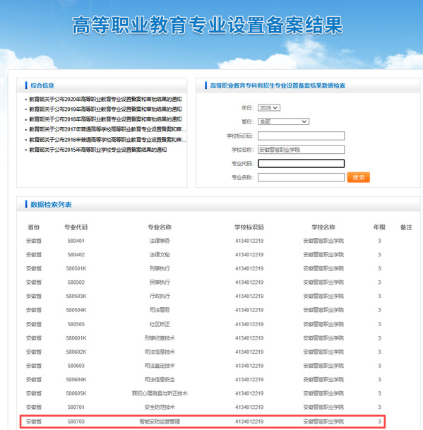 日前,教育部公布了2026年高等职业教育专科专业设置备案和审批结果的通知,学院申报的智能安防运营管理专业(专业代码580703)正式获教育部备案批准设立,拟将从2026年秋季开始招生。至此,学院专业总数已增至34个。