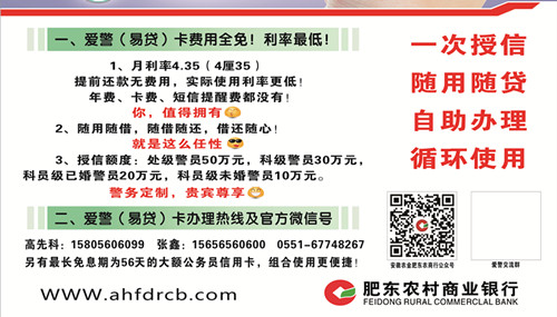 肥东农村商业银行为了拓展业务,专门针对我省监狱、戒毒系统人民警察量身打造了“爱警卡”贷款品种,以满足广大民警家属消费周转的需要。其产品具有额度高、期限长、利率低、担保方式简单、随用随贷并循环使用,自助办理方便快捷。有需要者请按要求准备相关材料,(需要资料均为两份:1.夫妻双方身份证复印件2份,2.结婚证2份,3.警官证复印件2份,4.房产证复印件1份。未婚要有未婚状况证明。注意需要三人以上为组联保上报,同时,请携带自己的身份证原件)于6月17日(周五)上午在院工会集中办理。