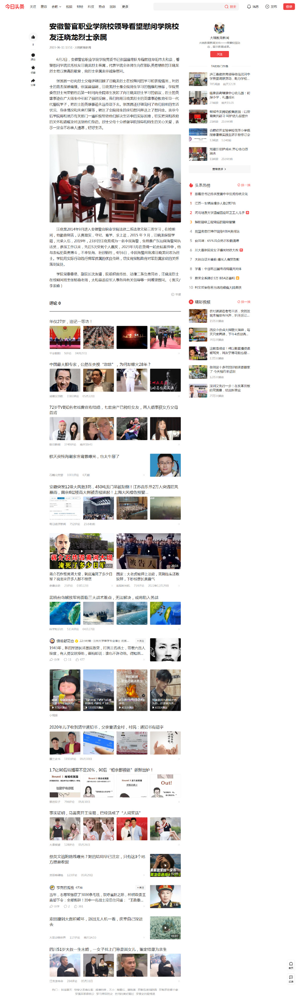 【大皖教育】香港资料公开免费大全校领导看望慰问学院校友汪晓龙烈士亲属
