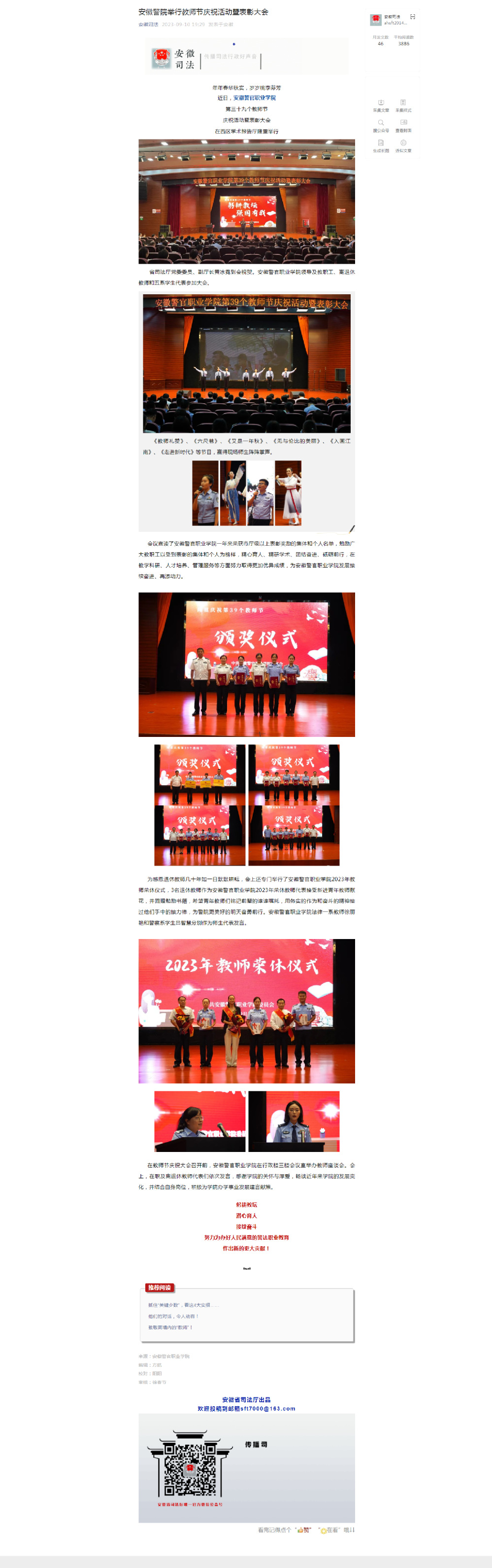 【安徽司法】安徽警院举行教师节庆祝活动暨表彰大会