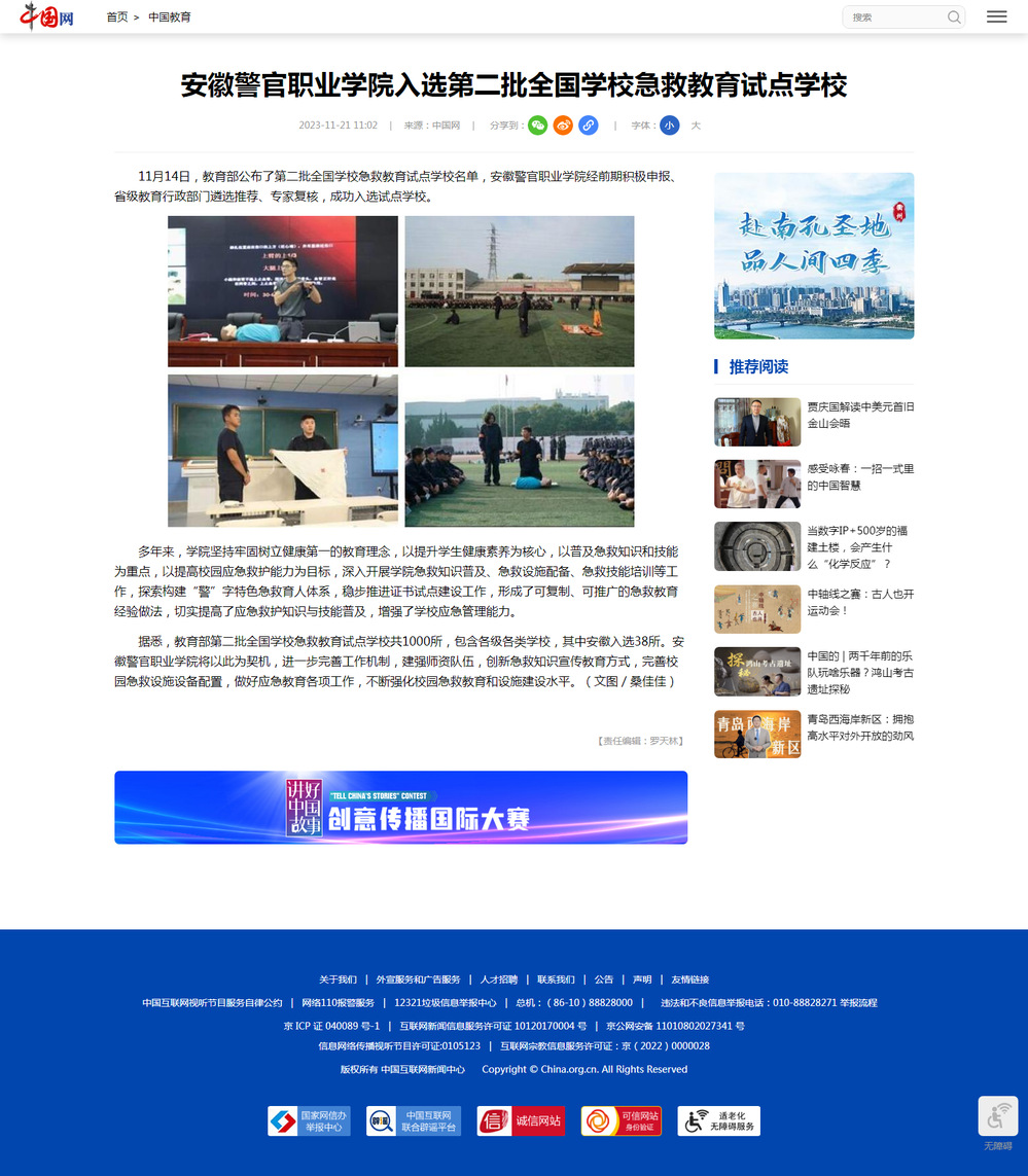 【中国网】香港资料公开免费大全入选第二批全国学校急救教育试点学校