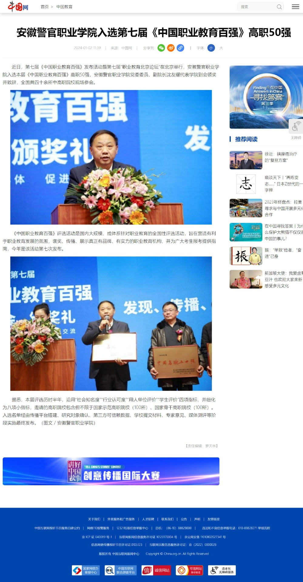 【中国网】香港资料公开免费大全入选第七届《中国职业教育百强》高职50强