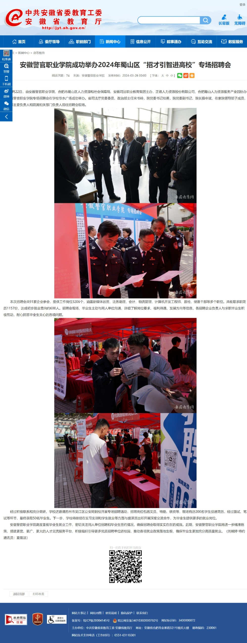 【安徽省教育厅】香港资料公开免费大全成功举办2024年蜀山区“招才引智进高校”专场招聘会