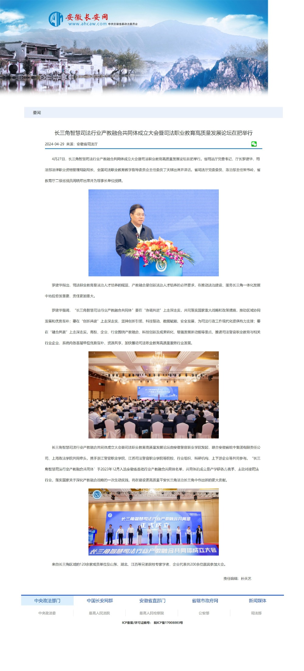 【安徽长安网】长三角智慧司法行业产教融合共同体成立大会暨司法职业教育高质量发展论坛在肥举行