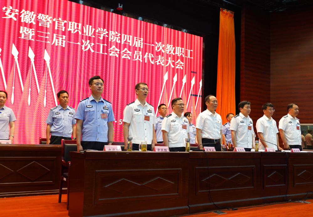 大会预备会审议通过了主席团成员建议名单,秘书长建议名单以及主要议程。在雄壮的国歌中,大会正式开幕。院党委副书记、院长操申斌代表学院作了题为《凝心聚力 乘势而上 坚定不移推进学院高层次办学高质量发展》的工作报告,全面回顾学院近五年来所取得的成绩。报告指出,五年来,学院办成了不少凝心聚力的大事,干成了一批追赶跨越的要事、办成了一批有得有感的实事,做成了一批破立并举的难事。报告深刻分析学院发展所面临的困难和挑战,提出学院2024年改革发展的主要任务。报告号召全体教职工按照学院“十四五”规划和第二次党代会确定的工作目标,凝心聚力、乘势而上,为打造“三地一区”、建设“七个强省”贡献警院力量。