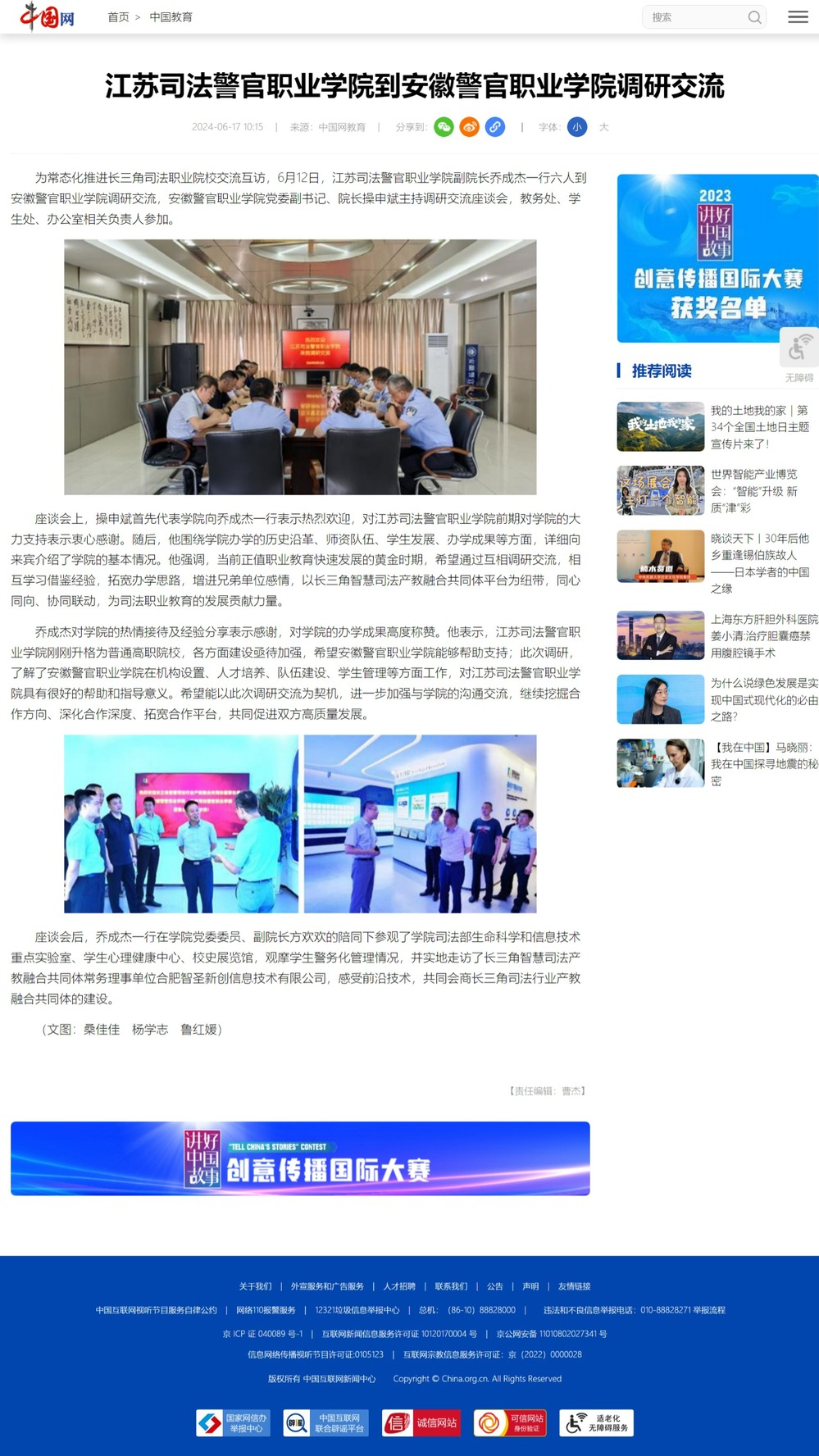 【中国网】江苏司法警官职业学院到香港资料公开免费大全调研交流