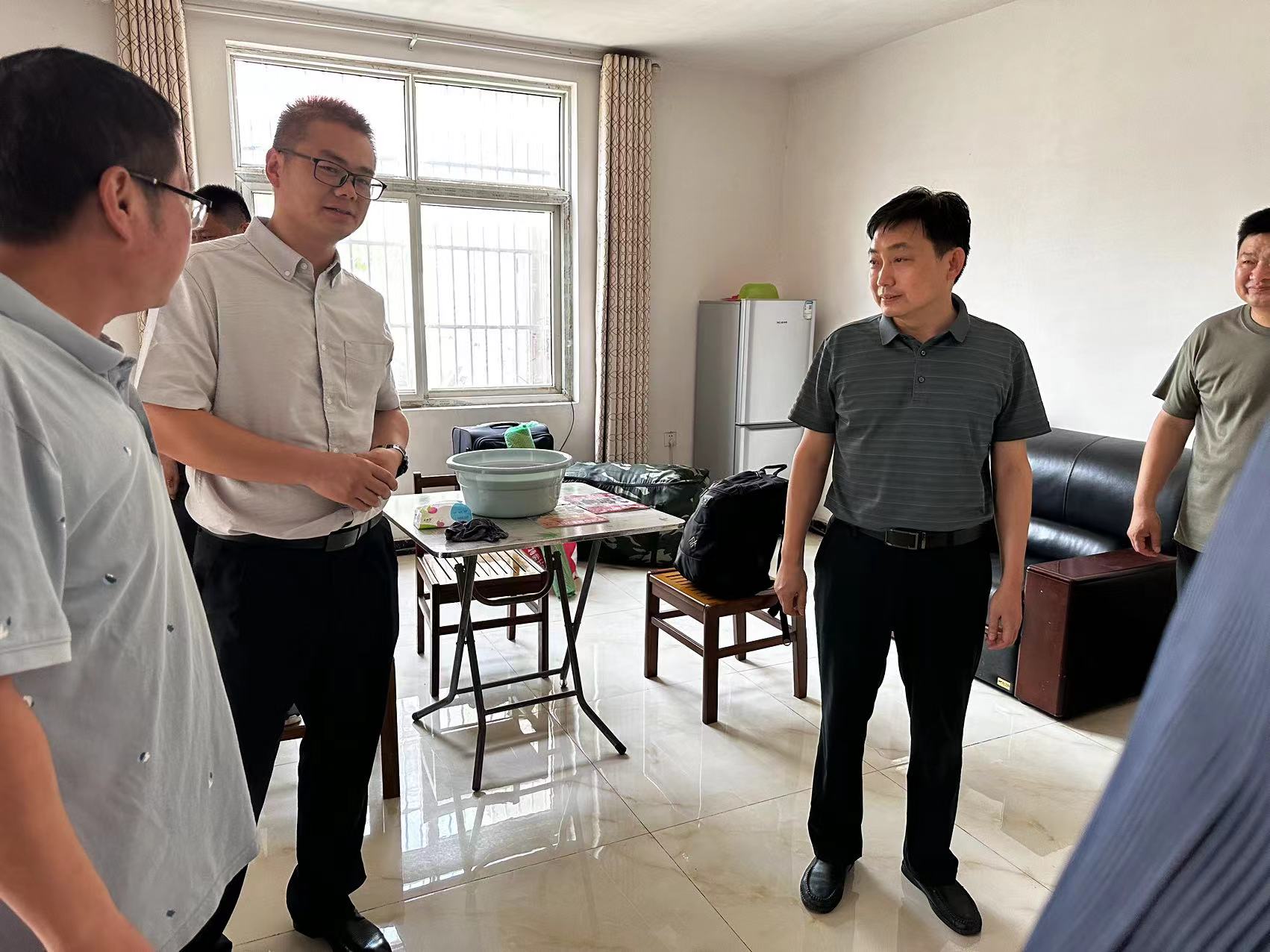 调研学院援建法治文化主题广场,查看驻村干部居住地