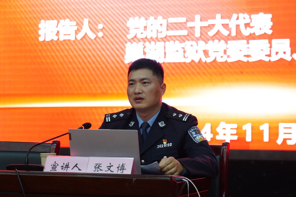 为深入学习宣传贯彻党的二十届三中全会精神,凝聚共识,激发奋进力量,推动学院教育事业高质量发展,近日,学院在西区学术报告厅举办了学习贯彻党的二十届三中全会精神宣讲会。巢湖监狱党委委员、政治处主任张文博应邀来院开展宣讲。院党委委员、副院长沈友耀主持会议,院党委副书记、院长操申斌及在家院领导出席,学院党员教职工、青年团干、团员代表和学生代表共270余人参加。