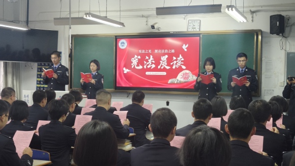 在随后的宪法晨读环节中,学生们齐声诵读宪法部分章节和条款,学习宪法内涵,共同感受宪法的权威,加深对宪法精神的理解,明白了学法才能知法,知法才会守法,当代青年更应该认真学习宪法有关内容,提高自身尊法学法守法用法的意识。