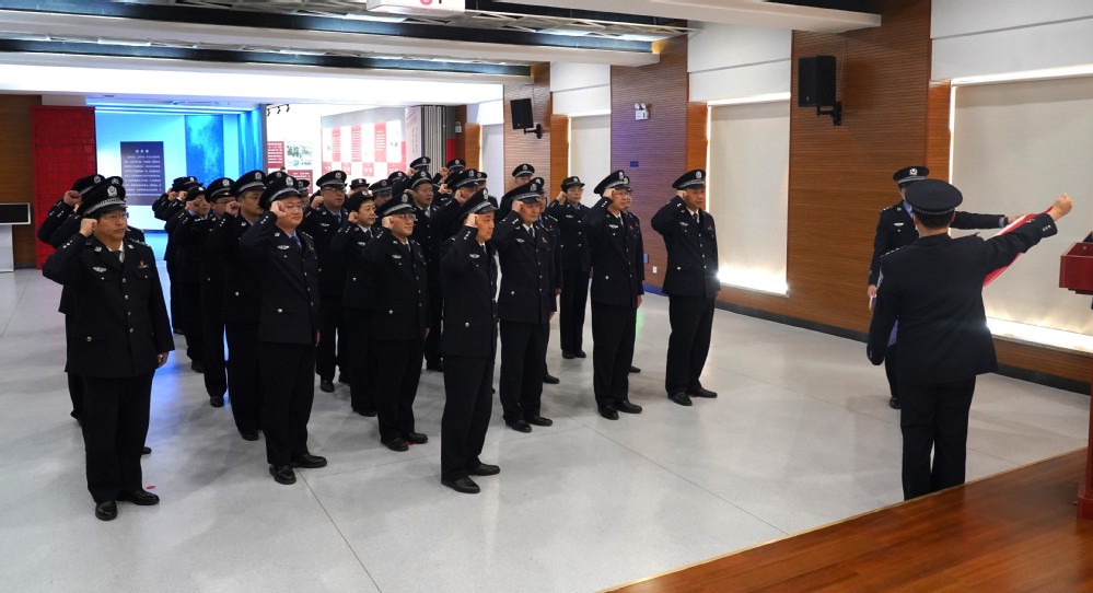 全体干警面向警旗重温人民警察入警誓词,大家以警旗为方向,以誓词为引领,庄严宣誓,“我志愿成为中华人民共和国人民警察......”琅琅誓言充分展现了对人民警察事业的忠诚和热爱。现场还举行了“光荣从警30年”纪念章颁发仪式,院领导向学院从警30年干警代表颁发纪念章,激励全体干警不忘入警初心、砥砺奋斗前行。