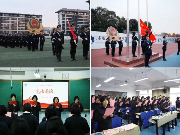 12月4日“国家宪法日”清晨,学院举行了庄严的升国旗仪式。伴随着雄壮的国歌,五星红旗冉冉升起,全体师生肃立致敬,展现了警院师生尊崇宪法、忠于国家的精神风貌。在随后的宪法晨读环节中,学生们齐声诵读宪法部分章节和条款,学习宪法内涵,朗朗诵读声中,宪法的庄严与权威深深烙印在每位学子心中,进一步强化了法治信仰。