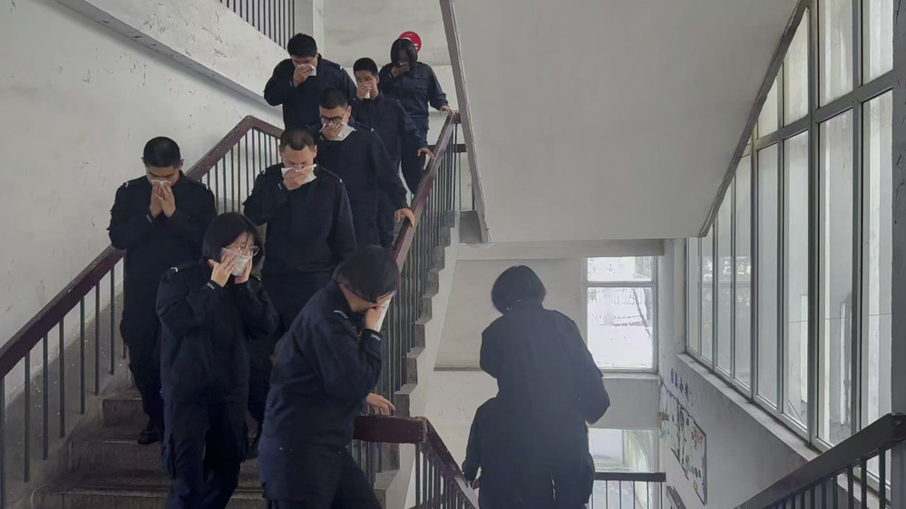 演练正式启动前,各岗位工作人员提前到位,完成点位检查与流程确认,为演练顺利开展做好充分准备。随着消防警报正式拉响,演练正式拉开帷幕。各班辅导员、班长迅速响应,组织学生弯腰捂鼻、低姿前行,有序疏散至指定集合点,充分展现出我院学子优良的纪律作风与应急素养。