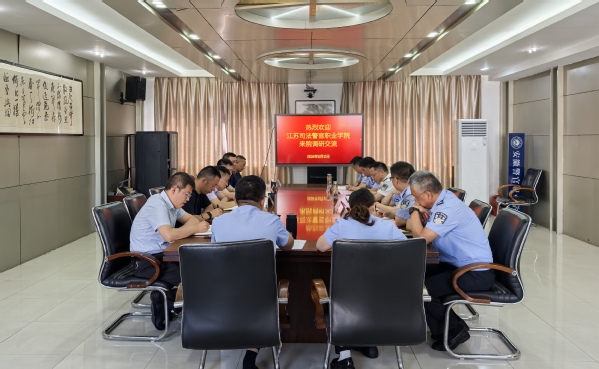为常态化推进长三角司法职业院校交流互访,6月12日,江苏司法警官学院副院长乔成杰一行六人来院调研交流,学院党委副书记、院长操申斌主持调研交流座谈会,教务处、学生处、办公室相关负责人参加。