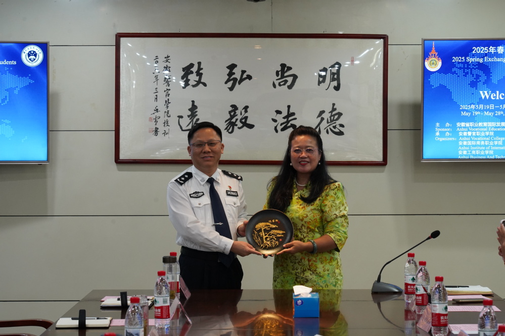 座谈会上,院党委副书记、院长操申斌和泰国皇家理工大学Thosporn Sangsawang教授代表双方互赠纪念品。与会人员就学生培养方案、师资力量建设、加强交流等进行了深入研讨。