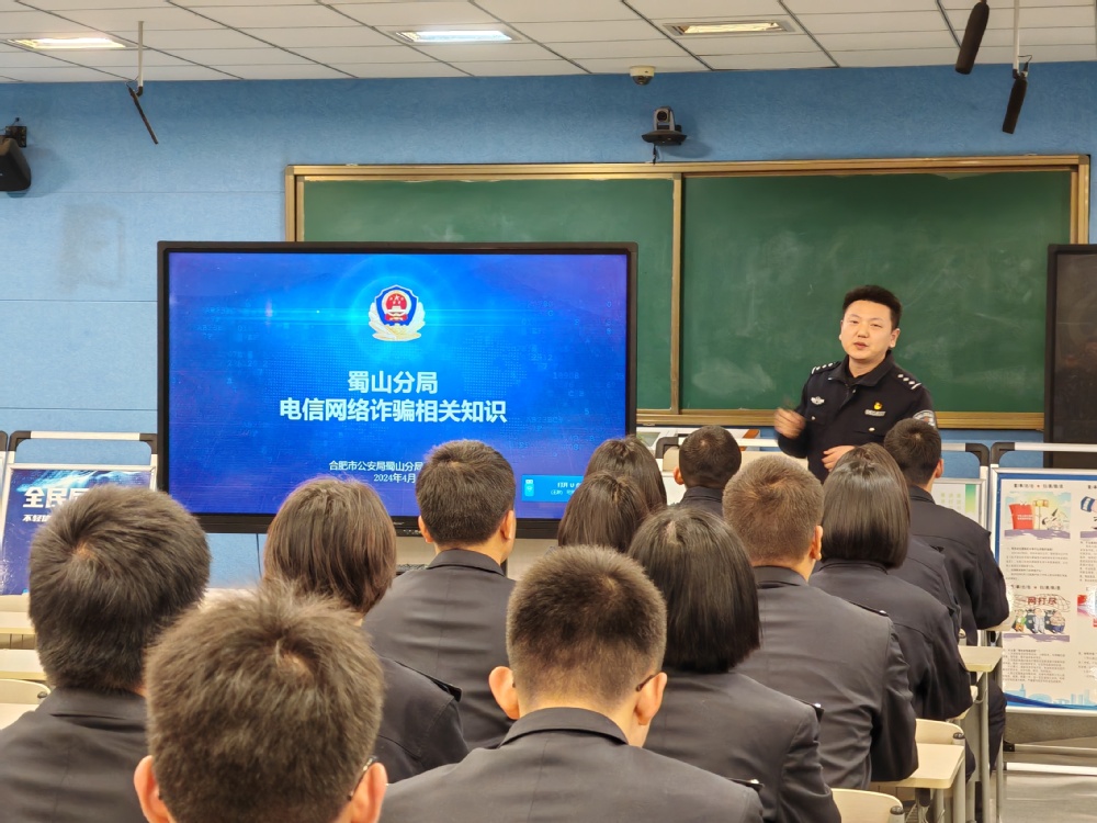 为进一步提高学生识诈防诈意识和反诈防骗能力,2月28日下午,合肥市公安局蜀山分局杨警官受邀来院做新学期“开学反诈第一课”宣传教育活动,井岗派出所、十里店社区工作人员和院警察系、信息管理系共百余名学生聆听讲座。