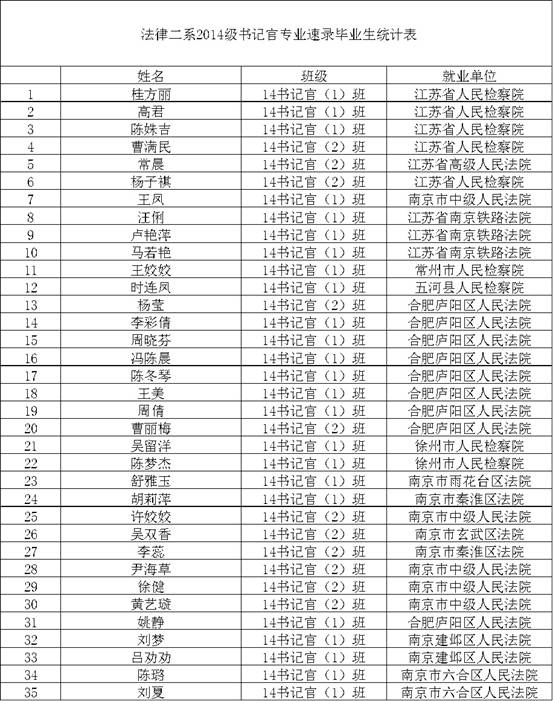 此次招聘,我系14书记官专业35 名毕业生凭着扎实的理论知识、过硬的速录技能,过关斩将、脱颖而出,其中桂方丽、杨子祺同学分别以总分第一名的优异成绩被江苏省高级人民法院、江苏省人民检察院录取,专业对口就业率一次性达到近30%。
