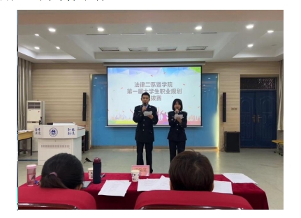 大赛在同学们热烈的掌声中开始,选手们按照事先抽签决定的演讲顺序上台演讲,用他们饱满的激情和精心制作的ppt描绘着属于他们未来的蓝图。评委进行点评或提问,并进行最后的评选。经过激烈的角逐,21法律文秘二班薛斌富获得就业赛道一等奖;22法律文秘四班王梦蝶和22法律文秘五班陈梦雪获得成长赛道一等奖。