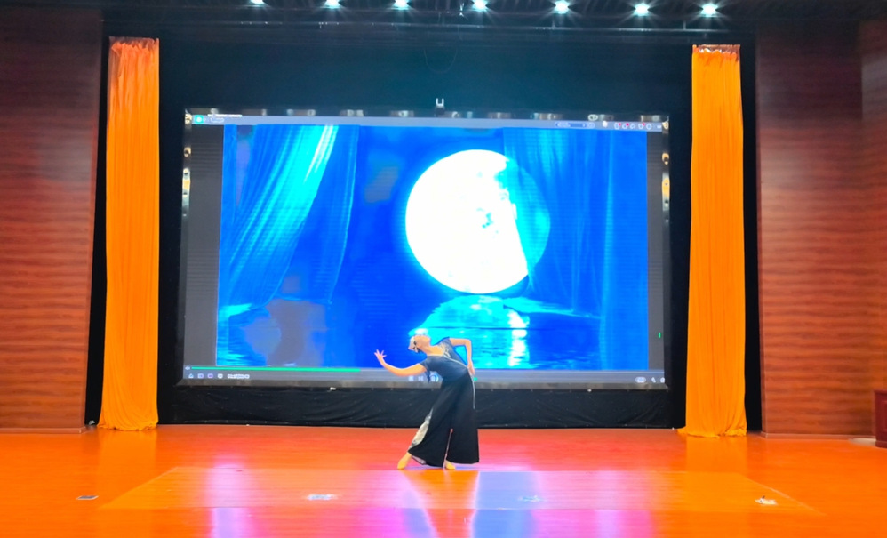 决赛现场,刘凯悦同学身着青荷色水袖舞衣翩然登场。随着悠扬的丝竹乐声,舞者以轻盈灵动的舞姿,腰肢轻转间将江南采莲女的绰约风姿展现得淋漓尽致。她的每一个动作,或婉转低回,或轻盈腾跃,都巧妙地融入了对传统文化的理解与诠释,仿佛把观众带入了诗意的情境之中,赢得了现场观众经久不息的掌声。