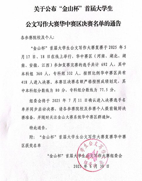 近日,“金山杯”首届全国大学生公文写作大赛复赛成绩揭晓,学院法律二系法律文秘专业学生表现优异,喜获丰收。