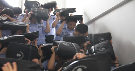 本次演练分七个科目——地震报警、就地避险、人员疏散、人员搜救、医疗救护、消防灭火、心理治疗。随着防空警报拉响,演练正式开始,各班级学生在班主任老师指导下,迅速在教室的课桌下或墙角处进行躲避,30秒后,疏散演练指令发出,各班主任又组织学生迅速、有序地按规定逃生路线向外撤离疏散,在指定的安全区域集合并清点人数后及时向上级报告。随后,搜救小组在保证自身安全的前提下进入各教室进行搜查,确认没有人员后撤离现场。医疗救护队和心理治疗志愿者对伤员开展治疗和救助工作。消防队员对地震造成的火灾及时开展扑救,以防次生灾害的发生。各部门在演习中协调联动,演练检验了预案,锻炼了师生,达到了预期目的。