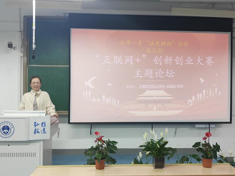 为提升大学生创新创业能力,做好“互联网+”大学生创新创业大赛备赛、选拔工作。法律一系于5月11日在三号教学楼205教室举办“互联网+”创新创业大赛主题论坛,特邀安徽财贸职业学院倪晶晶教授进行专题讲座。