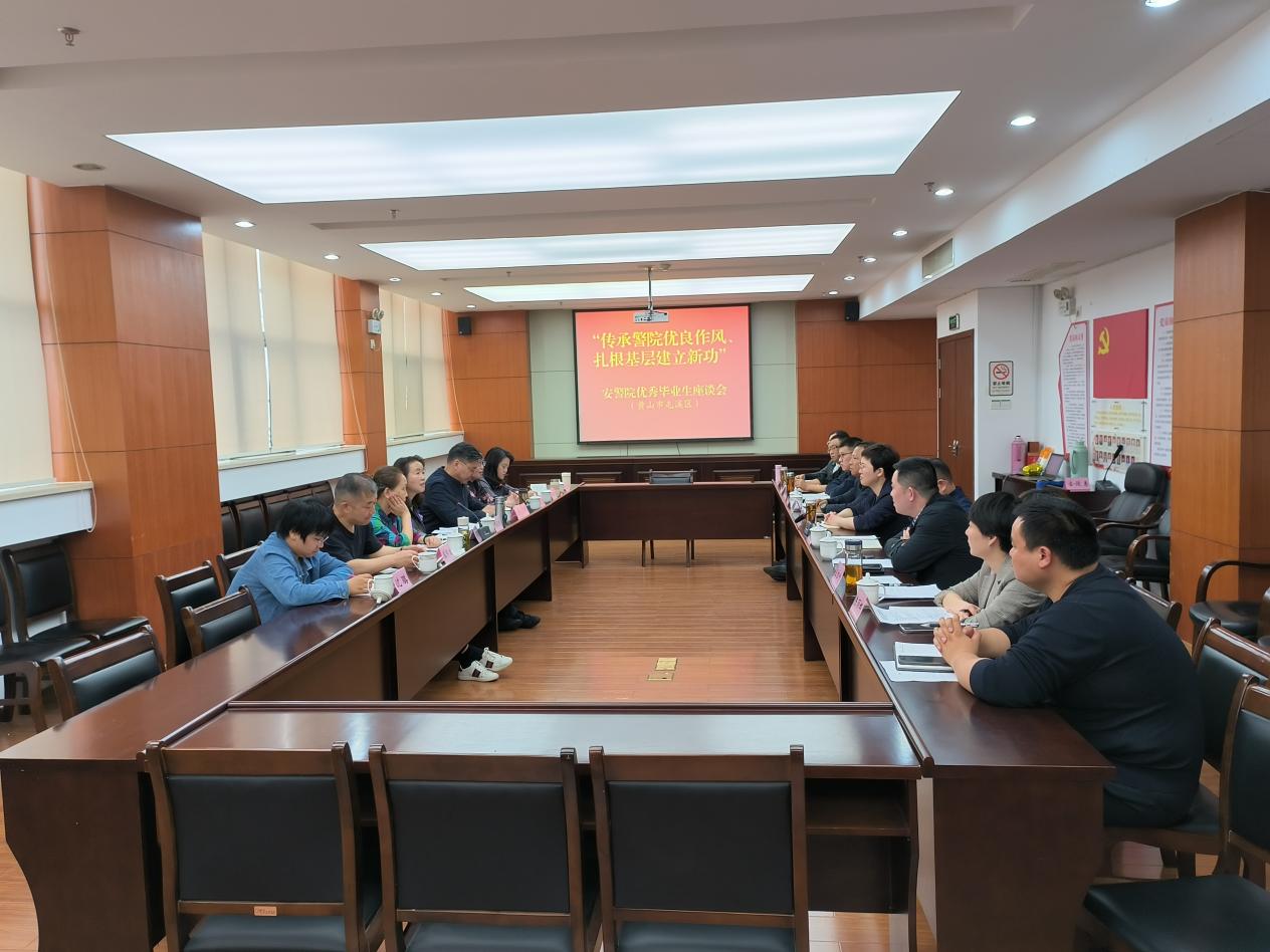 为进一步了解企业用人需求,拓宽毕业生就业通道,掌握毕业生的工作情况,并听取毕业生对母校人才培养模式的意见及建议,进一步优化课程设置和学生管理方式,5月12日, 法律一系主任胡丽珠率教师和辅导员代表赴黄山屯溪区开展主题为“传承警院优良作风扎根基层建立新功”的优秀毕业生座谈会。屯溪区委常委、宣传部长金颖、屯溪区黎阳镇党委副书记、镇长叶启龙、黄山市公安局交警支队全继平、歙县人民法院副院长盛国荣等11名优秀毕业生代表参加了座谈会。