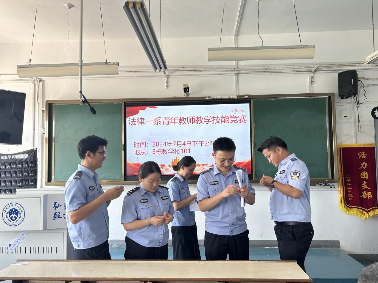 为着力提升青年教师创新能力,打造高素质技术技能型教师团队,根据《安徽省司法职业教育院校青年教师教学技能竞赛实施方案》要求,2024年7月4日下午,法律一系在3号教学楼101教室举办青年教师教学技能竞赛。