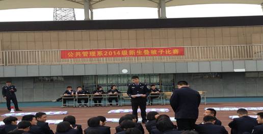 11月19日下午由我系学生会生活部组织,14级全体新生参与的叠被子比赛在校操场举行。此次活动旨在进一步贯彻我院警务化管理规定,丰富同学们业余文化生活。